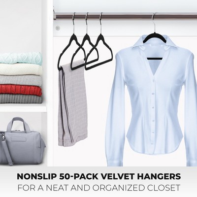 10× strong non slip velvet flocked clothes hangers curved dresses coat hanging. Black velvet hangers 100 pack thin non slip space saving coat hangers with hook. Free delivery and returns on ebay plus items for plus members. The hangers have a strong grip, which accommodates most fabrics and prevents your clothes from slipping. You can opt for easy storage and do it neatly with the assistance of these non slip velvet suit hanger that can make your closet more spacious.