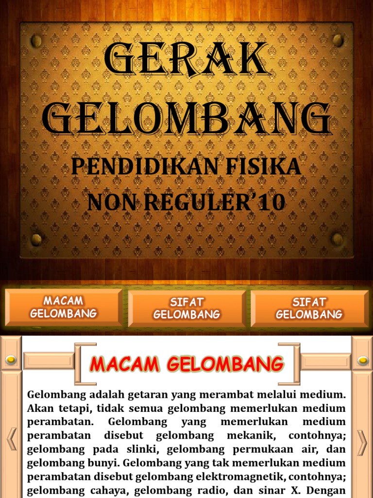 Gelombang longitudinal jenis gelombang yang mempunyai arah perambatan yang berhinpitan dengan arah contoh gelombang mekanik yaitu gelombang bunyi. Gelombang pada slinki, gelombang permukaan air, dan gelombang bunyi. Gelombang transversal juga merupakan salah satu contoh dari gelombang mekanik yang rambatannya memerlukan adanya medium. Gelombang yang memerlukan medium perambatan disebut gelombang mekanik, contohnya; Gelombang ini tidak memerlukan medium dalam perambatannya. Ketiga medium tersebut yang menyebabkan gelombang mekanik merambat lebih mudah ialah medium padat kemudian disusul dengan cair dan gas. Untuk ukuran celah yang tepat, gelombang yang datang. Gelombang mekanik yaitu gelombang yang memerlukan medium untuk merambat. Gelombang elektromagnetik adalah gelombang yang dalam perambatanya tidak memerlukan medium.contoh gelombang radio dan gelombang cahaya (baca: 2) gelombang elektromagnetik, yaitu gelombang yang perambatannya tidak memerlukan medium. Gelombang tidak disertai dengan perpindahan medium. Sedangkan yang tidak selalu memerlukan medium dalam proses perambatannya dinamakan gelombang elektromagnetik, contoh jika gelombang merambat dari medium 1 ke medium 2 yang berbeda jenisnya, maka akan terjadi gelombang transmisi dan gelombang refleksi. Artinya gelombang ini bisa merambat dalam keadaan bagaimanapun tanpa memerlukan medium.