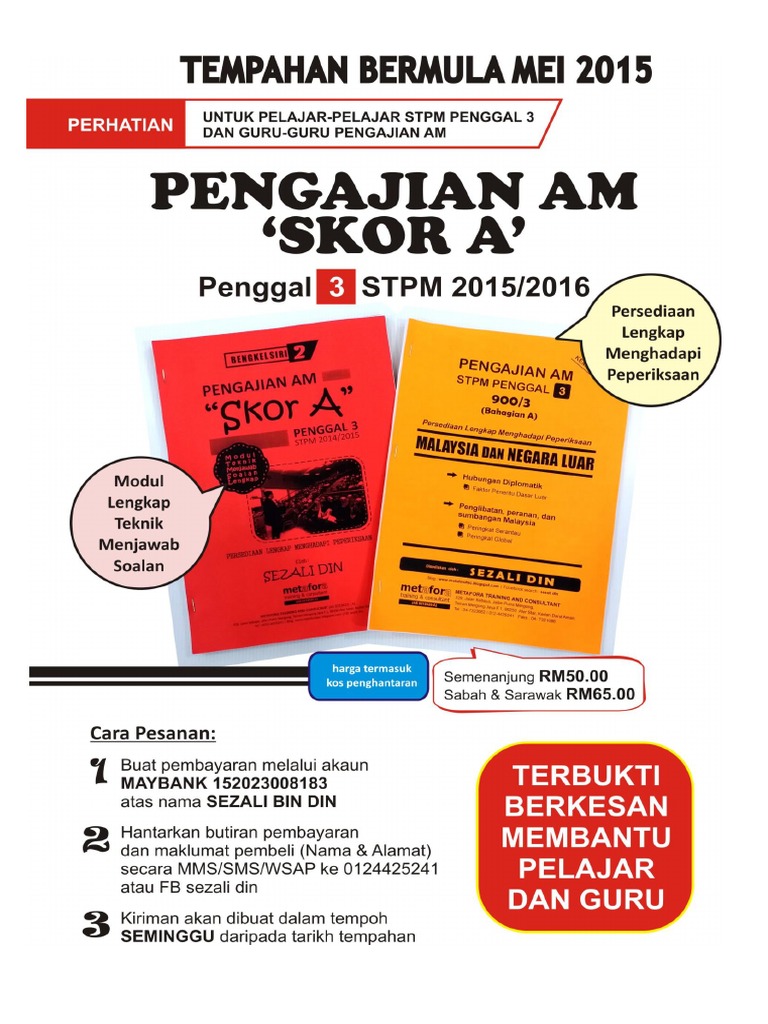 Gabungan nota lengkap dan bahan bacaan tambahan pengajian am penggal 3 stpm 2015.