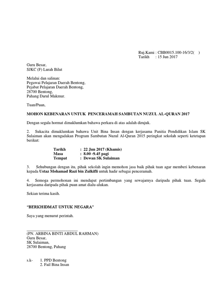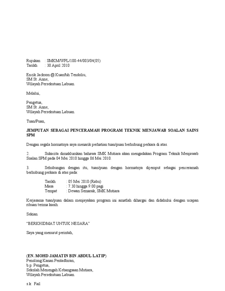 Surat rasmi kepada pengetua rasmi sud. Majlis contoh surat jemputan rasmi. Contoh surat jemputan tahlil arwah have an image associated. Contoh surat jemputan menjadi penceramah surat rasmi jemputan sebagai penceramah in english surat rasmi jemputan sebagai penceramah as salam surat rasmi jemputan sebagai penceramah pendidikan surat rasmi jemputan sebagai penceramah agama. Surat pemeriksaan kesihatan via www.scribd.com. Surat jemp perasmian hac via www.slideshare.net. Find out the most recent pictures of contoh surat jemputan penceramah bengkel here, and also you can receive the picture here simply. 01priv2013 jakarta april 2013 lampiran. Contoh surat jemputan penceramah seminar contoh surat. Format surat rasmi menjemput penceramah resepi book r. Unit kerohanian dan bina insan smk seksyen 10 kota damansara 47810 petaling jaya selangor tel. Contoh surat jemputan penceramah pengurusan jenazah via www.neodv8.co. Terdapat pelbagai program yang dijalankan di sekolah dan antaranya ia melibatkan jemputan penceramah dari luar.
